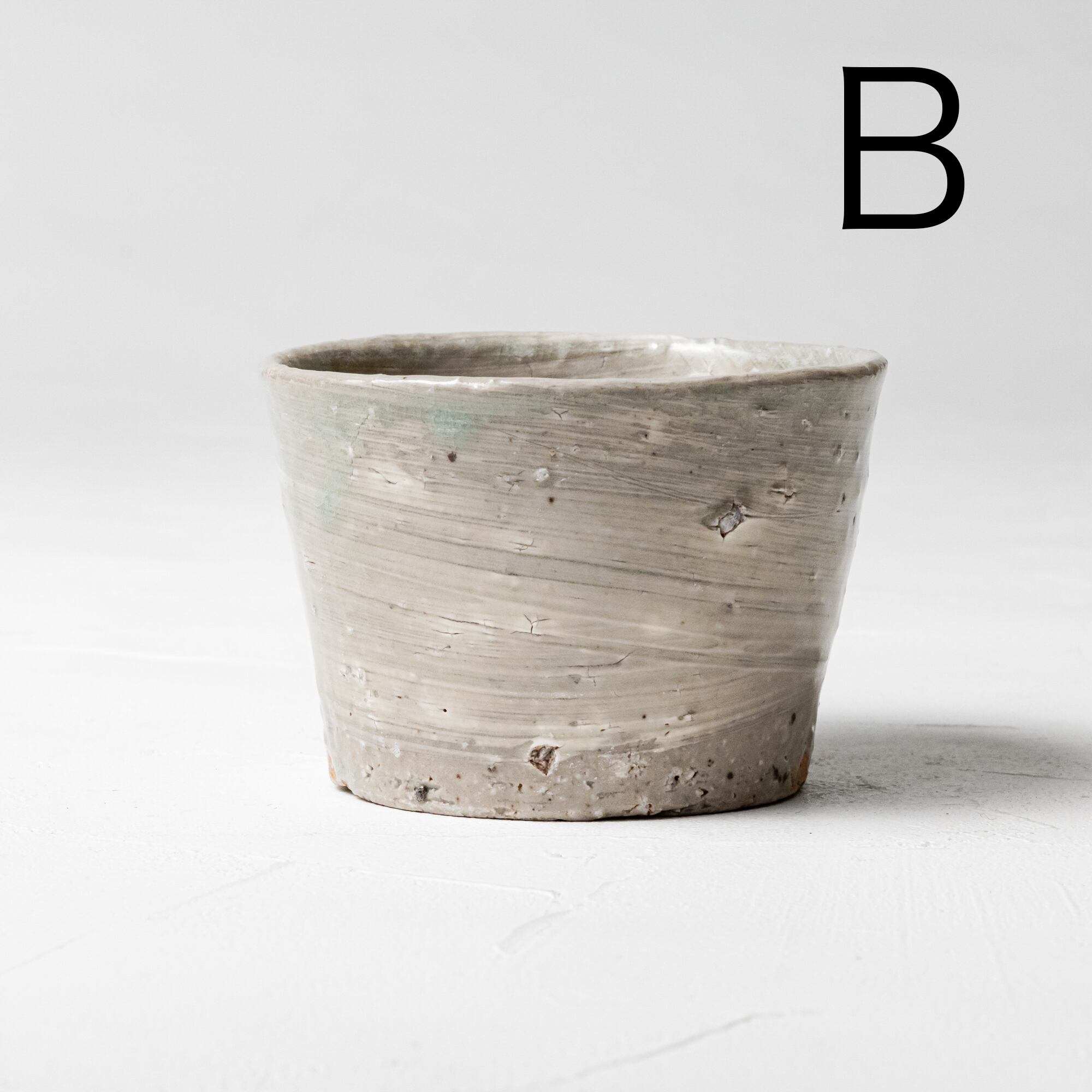 作家によるの手作りのためカタチや大きさ、ヒビ(貫入)や鉄分等の黒い点、石はぜ、ピンホールや歪み方や釉薬の掛かり具合などもすべて1点ごと若干の違いが出る場合があります。これも手仕事の味わいだと思って頂ければ幸いです。