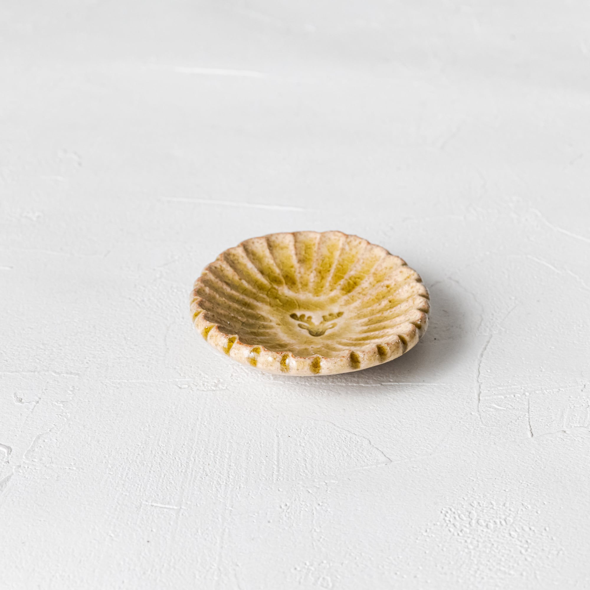 [うつわ うたたね]5. しのぎ豆皿(黄灰釉)
