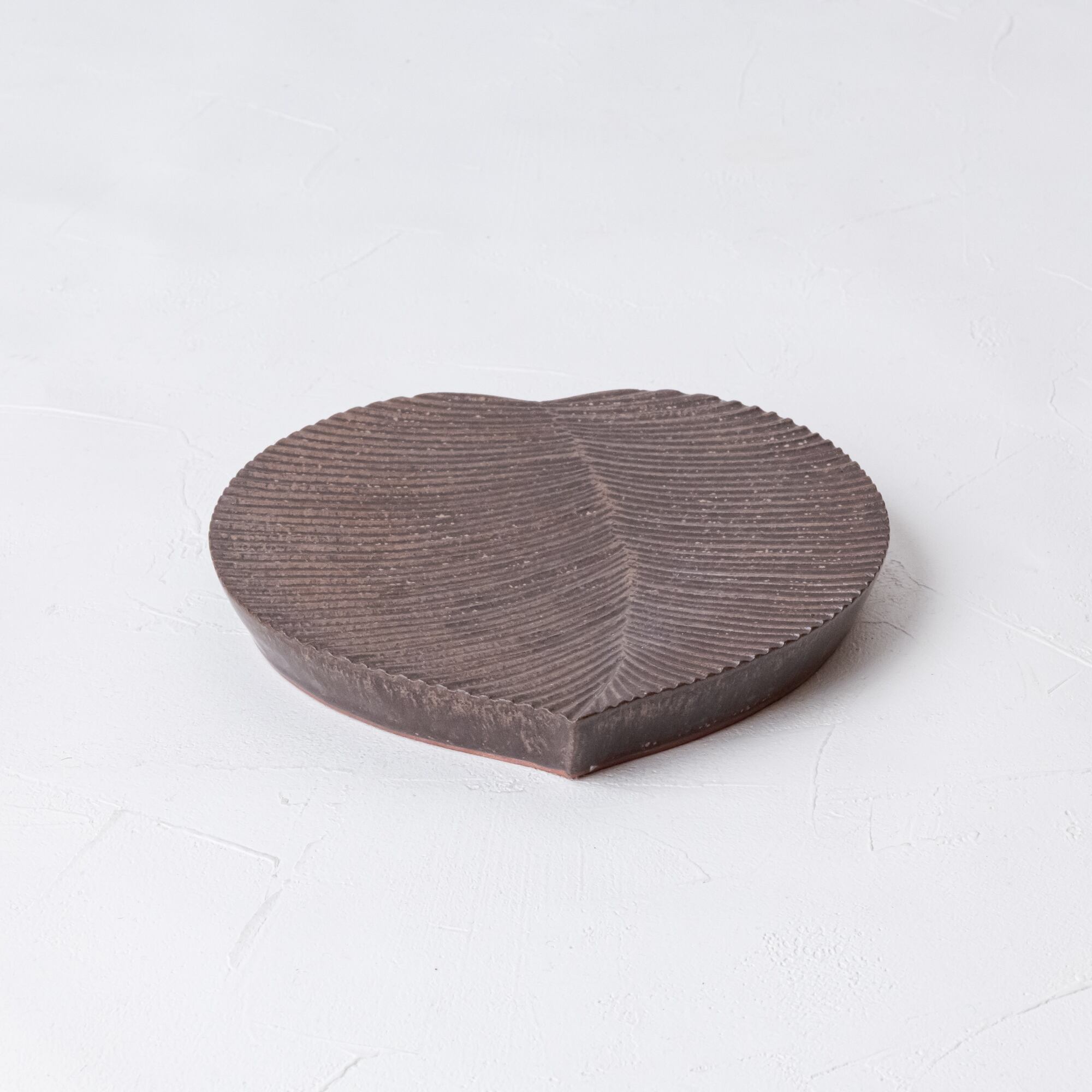 【増田 哲士】14.ハートリーフ皿/大(茶)